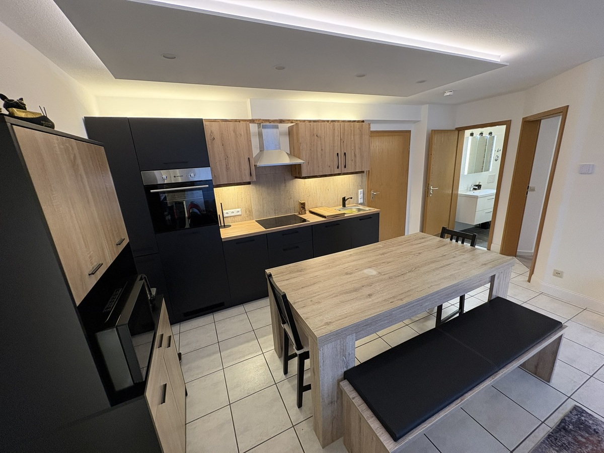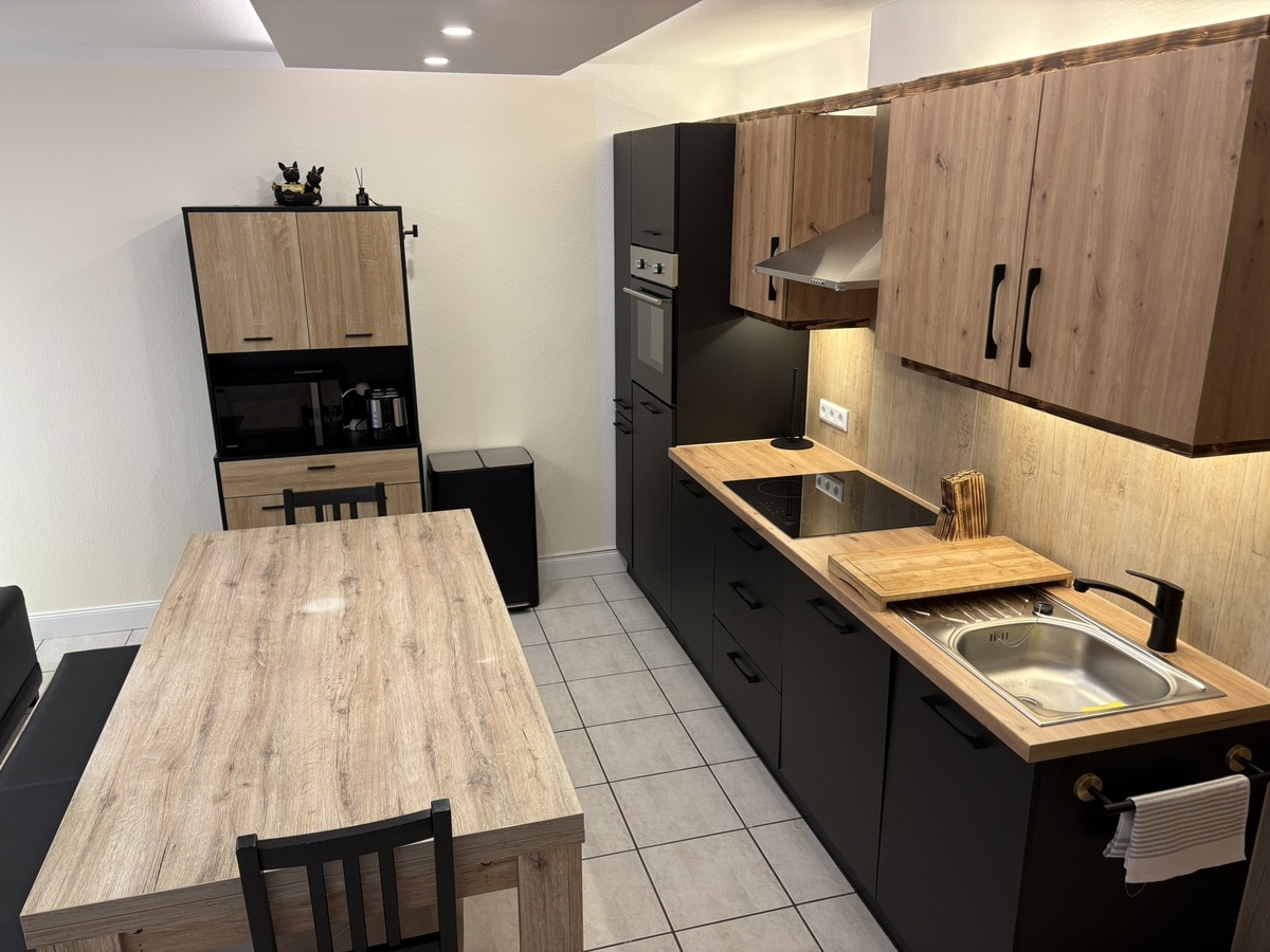 Die Wohnung ist voll ausgestattet mit modernen Geräten und Möbeln: Geschirr, Besteck, Töpfe und Pfannen, Geschirrspüler, Herd, Backofen, Mikrowelle und vieles mehr.