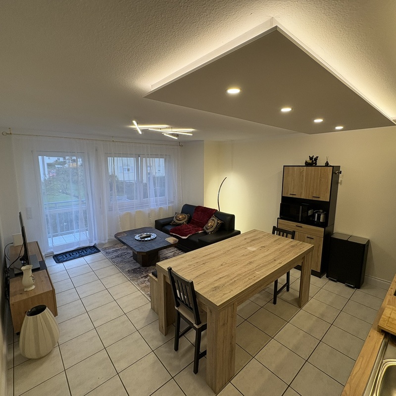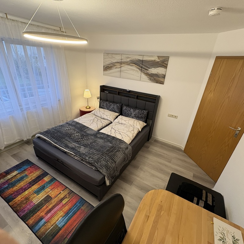 Verfügbar: ab Mitte April bis Dezember 2027 (flexibel verlängerbar). Größe: ca. 50 qm. Frisch renoviert. Für max. 2 Personen. Preis: 1200 € kalt + Nebenkosten nach Verbrauch. Privater KFZ-Stellplatz inklusive.
